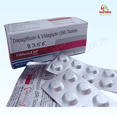 Vildazed DP Tablet combines Vildagliptin, a DPP-4 inhibitor, and Dapagliflozin, an SGLT2 inhibitor, to provide comprehensive control of blood glucose levels. Vildagliptin works by increasing incretin levels, which enhance insulin secretion and reduce glucagon production. Dapagliflozin lowers blood sugar by increasing glucose excretion through urine. Together, they help in reducing fasting and postprandial glucose levels, improving HbA1c, and supporting weight management. This medicine is most effective when taken with a healthy diet and regular exercise.