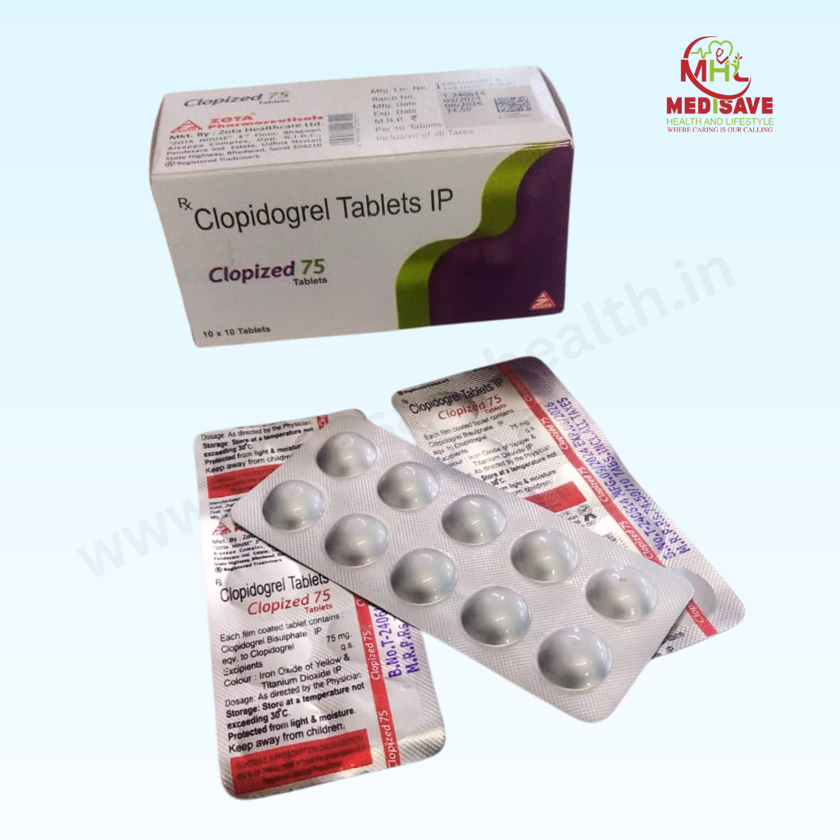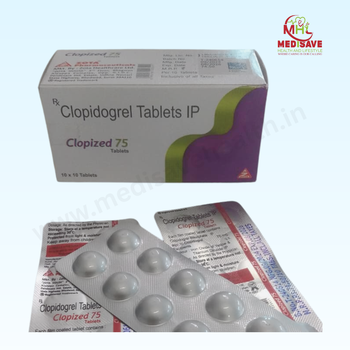 Clopized 75 Tablet contains Clopidogrel, an antiplatelet medicine that prevents blood clots, reducing the risk of heart attack and stroke.