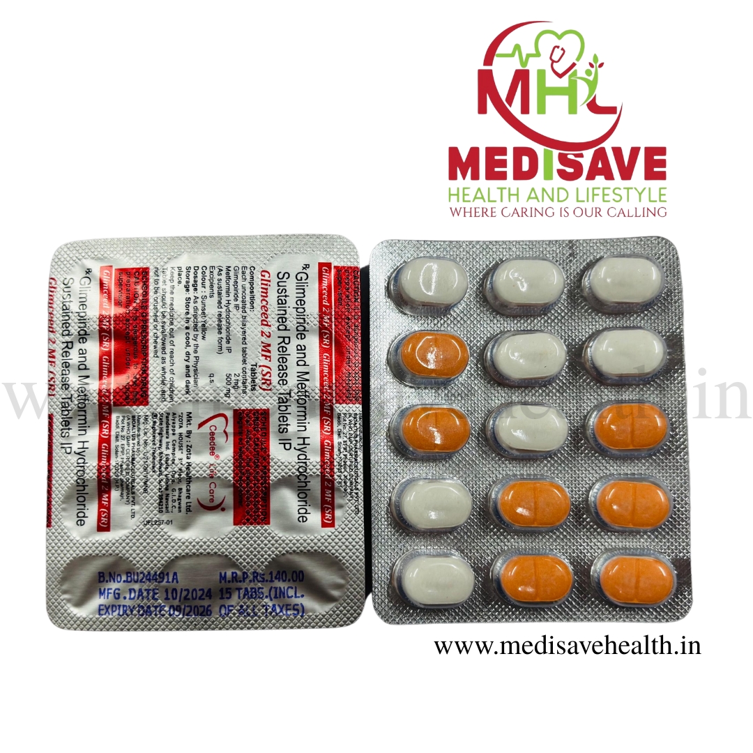 Glimepiride+Metformin 2mg/500mg Tablet SR should be taken with food. Take it regularly at the same time each day to get the most benefit. Your doctor will decide what dose is best for you and this may change from time to time according to how it is working according to your blood sugar levels.