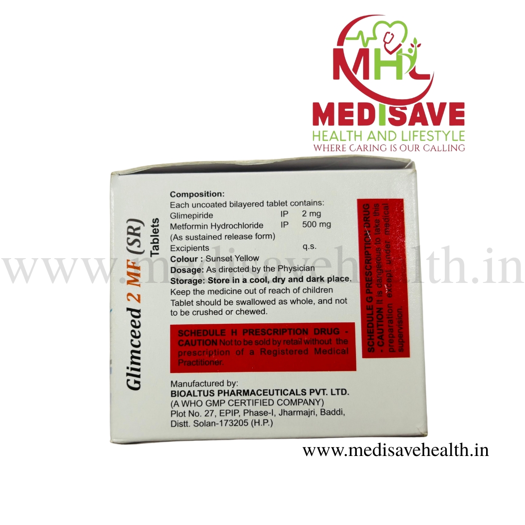 The most common side effect of Glimepiride+Metformin 2mg/500mg Tablet SR is low blood glucose levels (hypoglycemia). Make sure you recognize the signs of having low blood glucose levels, such as sweating, dizziness, headache, and shaking, and know how to deal with it. To prevent this, it's important to have regular meals and always carry a fast-acting source of glucose such as sugary food or fruit juice with you. Drinking alcohol can also increase your risk of low blood sugar levels and should be avoided. Other side effects that may be seen on taking this medicine include taste changes, nausea, diarrhea, stomach pain, headache, and upper respiratory tract infection. Some people may find that they put on weight with this medicine.