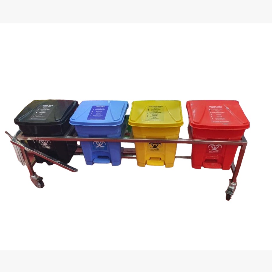 Medical Dustbin With SS Frame Set Of 4 With Wheel 15Ltr