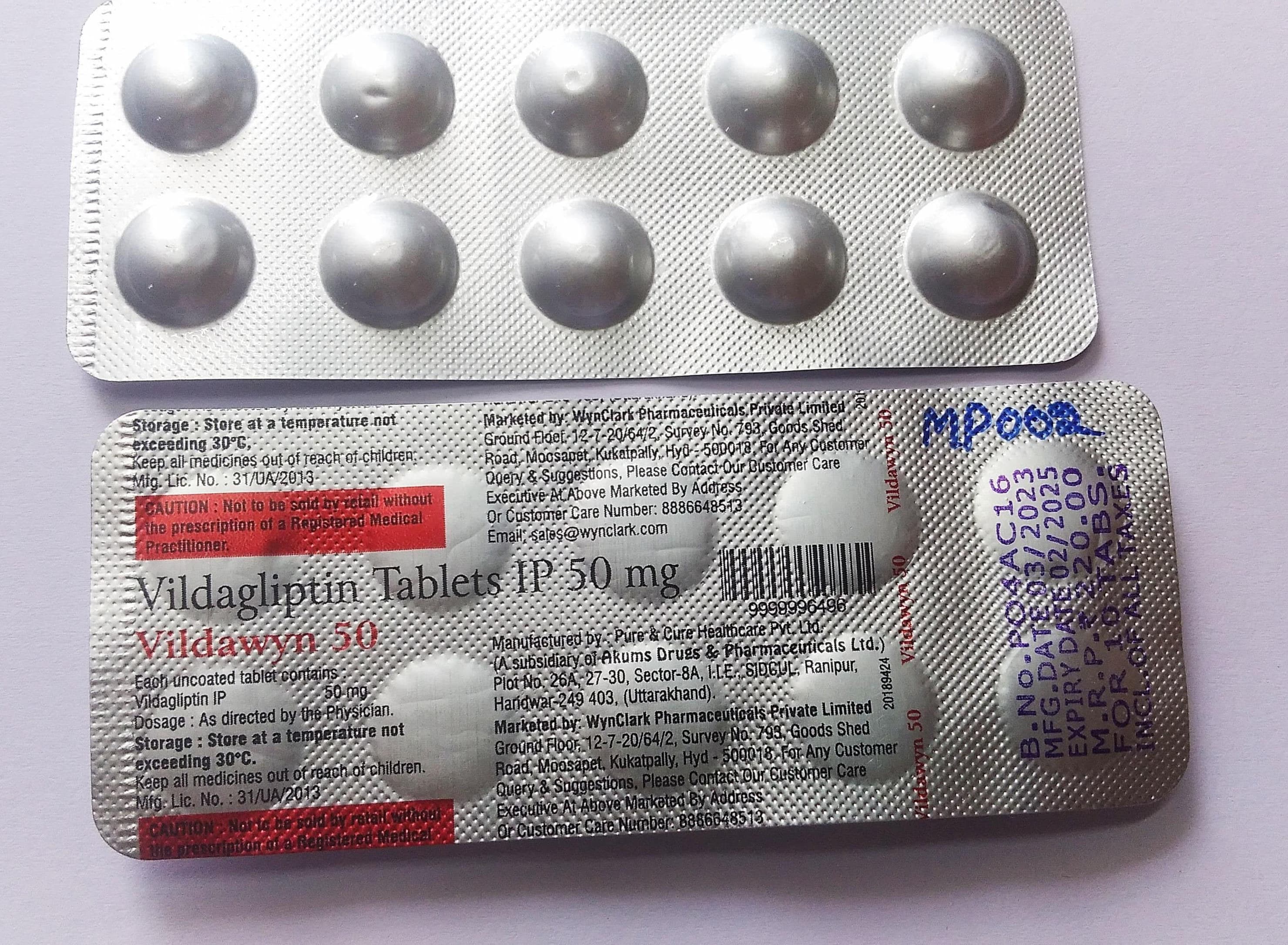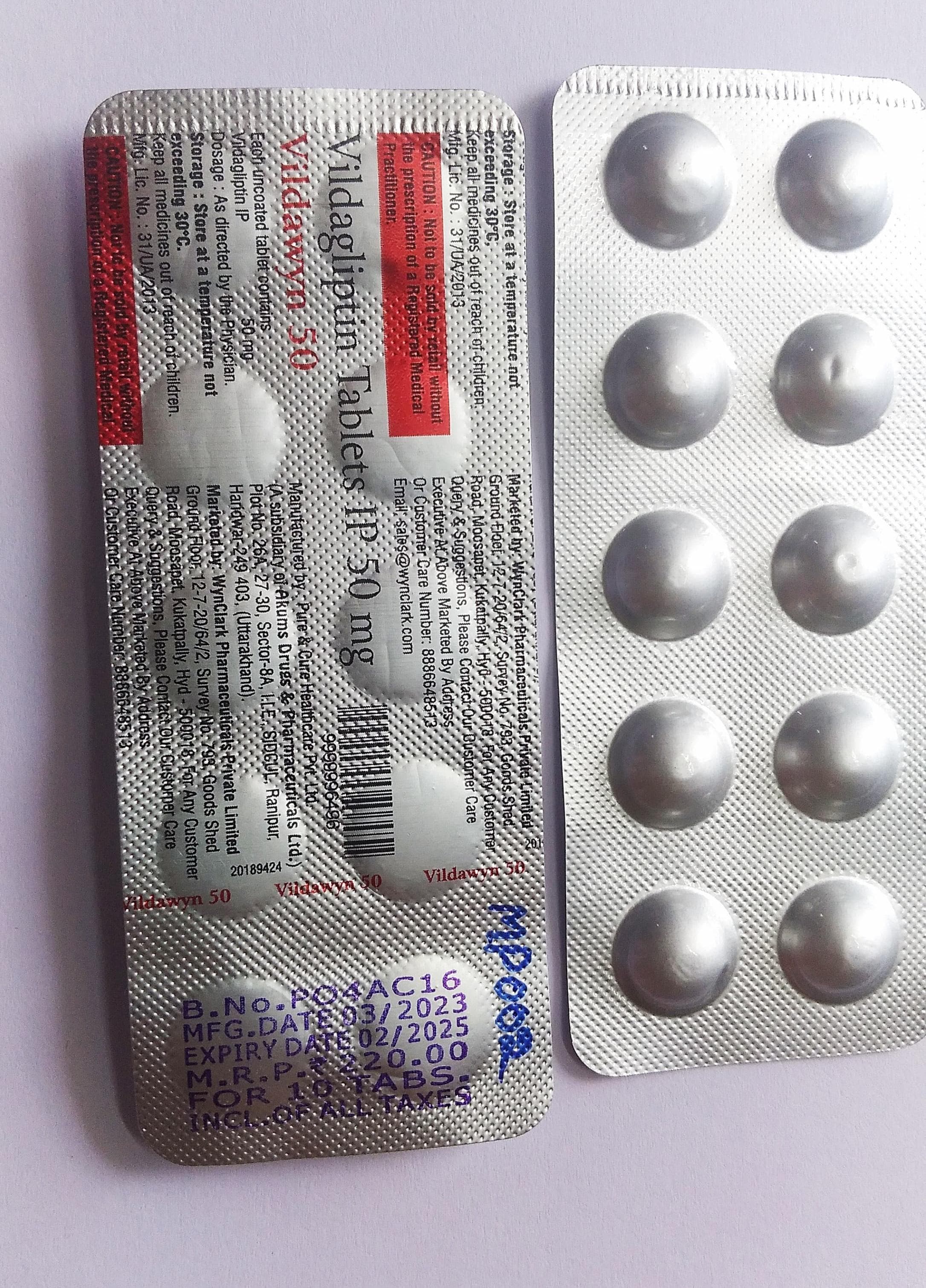 Vildagliptin is an antidiabetic medication. It works by increasing the release of insulin from the pancreas and decreasing the hormones that raise blood sugar levels. This reduces the fasting and postmeal sugar levels.