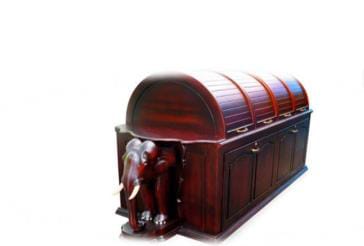 Elephant model - Heavy Duty [Lying type] length 275 cm [9 feet], width 76 cm [2 ½ feet], height 4 ½ feet, Wood – Tea