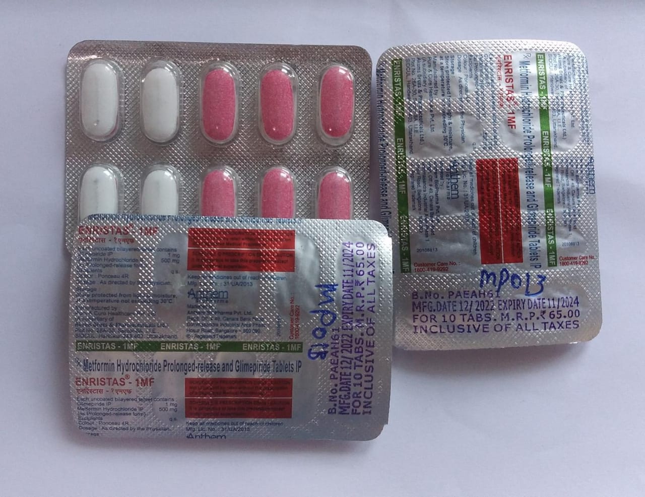 Enristas-1MF Tablet is a combination of two antidiabetic drugs, namely: Glimepiride and Metformin. Glimepiride works by stimulating beta cells in the pancreas that produce insulin. Thus, insulin helps to remove sugar from the blood. Metformin works by reducing the sugar production by cells in the liver and delays sugar absorption from the intestines. Also, it increases the sensitivity of muscle cells to insulin, which enables these cells to remove sugar more effectively from the blood.