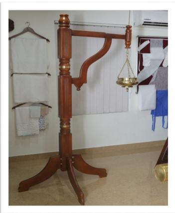 Shirodhara stand with brass work Height 184 cm [6 feet], Wood – Anjili. 4’’ x 4’’ thickness